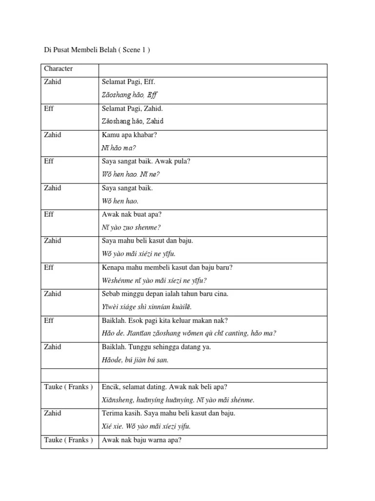 Kalopki · bahasa mandarin perbualan 1 · lakonan skrip dialog drama pendek · skrip drama pendek its all about money · skrip drama mandarin level 3 · skrip drama contoh skrip drama. Contoh skrip lakonan pendek :